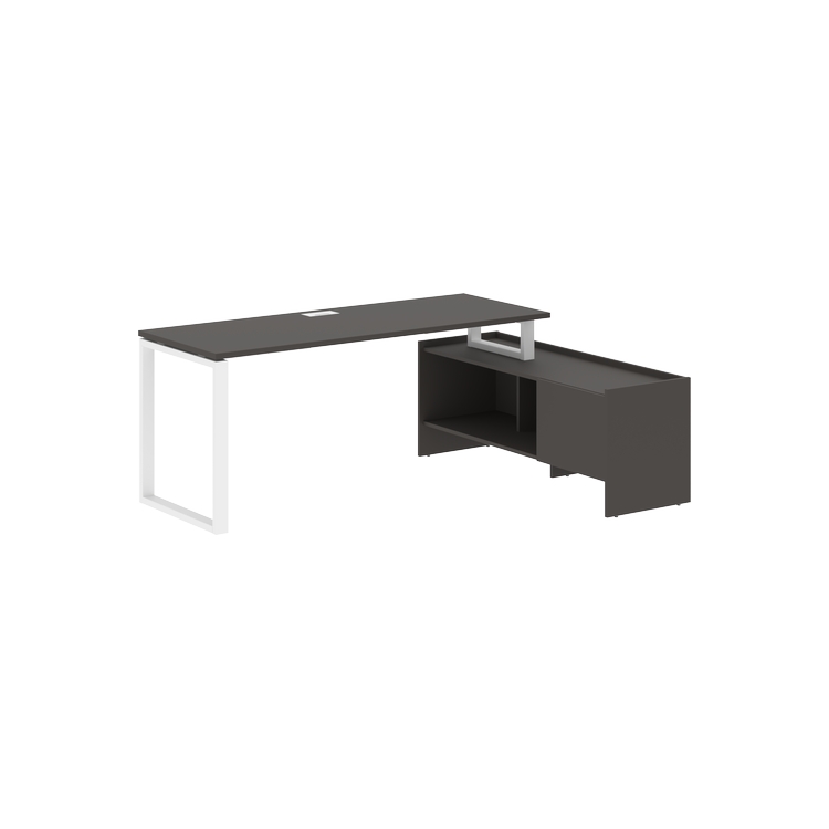 Столешница глубиной 670 мм из ЛДСП т.25 мм с кромками ПВХ по периметру т.2 мм. Комплектуется металлическим кабель-каналом габаритом 160х80х25 мм.