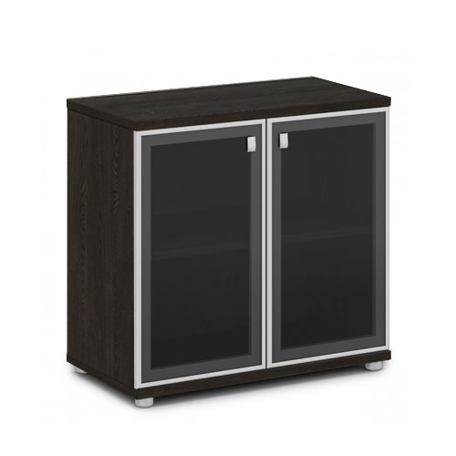 Двери стеклянные, распашные, низкие. Фасады в алюминиевом профиле толщиной 20 мм. Толщина стекла - 4 мм. Высота - 702 мм, крепление на 2-х петлях.