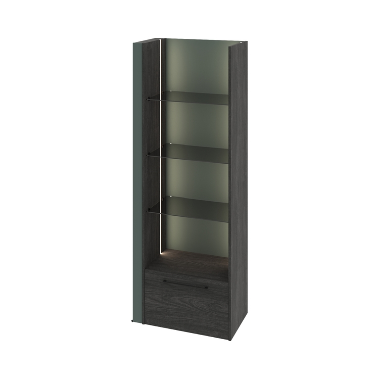Дополнительная секция стеллажа открытого с подсветкой, ящиком и 3-мя стеклянными полками.